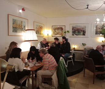 zum Kaffee und Plausch im Grand Hotel Café unter Anleitung der Projektkoordinatorin Sina Birling.